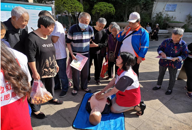 (图为县红十字志愿者在讲解心肺复苏操作要领)
