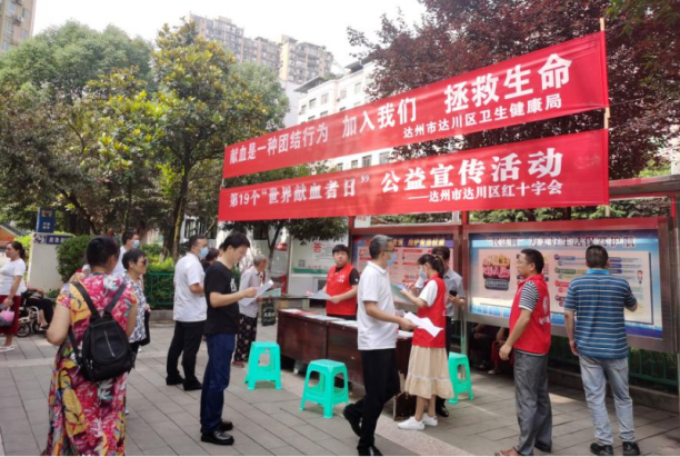 今年是第19个“世界献血者日”,为提高广大群众对无偿献血的认识,2022年6月14日上午,达川区卫生健康局联合区红十字会在三里坪街道领域广场献血屋旁开展了以“献血是一种团结行为。加入我们 ,拯救生命”为主题的宣传活动。