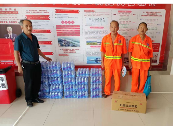 连日来,渠县气温居高不下,渠县天星街道总工会于7月15日开展了“夏送清凉”慰问活动,为头顶烈日奋战在工作一线的工作人员送上防暑降温物品,为他们捎去一丝丝清凉。