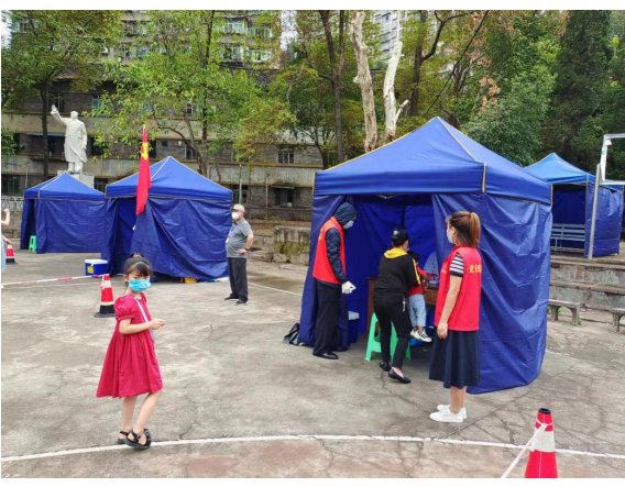 “我们社区共有21个小区,1.3万余人居住,其中有‘三无(无院墙、无物业、无门卫值守)’就有11个,人口近3000人。这次疫情防控阻击战,我们共组织党员志愿者165人,业主志愿者126人,大学生等其他志愿者服务人员32人,仅9月1日以来,我们就组织集中核酸检测10次,信息核查2414条4362人次,排查黄码人员363人,组织上门核酸采集560人次,调配工作人员680余人次,组织志愿服务1360人次。尽最大可能的调动一切资源服从服务于疫情防控工作,通过大家的共同努力,我们阶段达成了‘零感染’‘零隔离’的目标”。