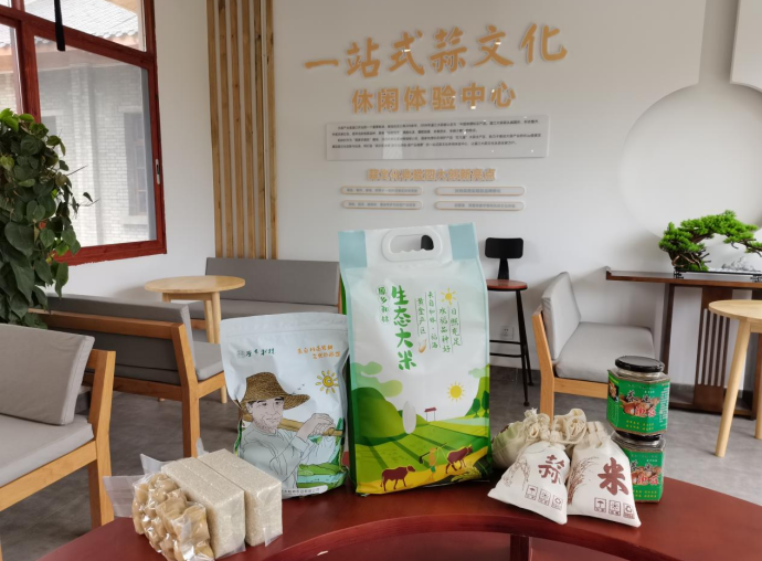 在和林村的稻香集市里,主播正拿着印着“原乡和林 鱼凫尚品”品牌的生态大米、泡蒜、手工蜂蜜等特色农产品直播推介,文创礼盒摊位上游客络绎不绝,手工皂、挂饰等产品深受大家的欢迎。