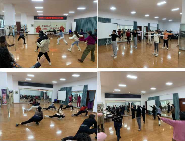 为认真贯彻《健康中国行动(2019—2030年)》,以推进“健康广汉”建设为引领,引导干部职工树立健康锻炼意识,展示雒城职工朝气蓬勃、积极向上的精神风貌,2023年12月19日至2024年1月24日,每周三下午15:30—16:30,广汉市雒城街道工会通过市总工会邀请专业舞蹈授课老师对街道机关干部职工、辖16个社区职工在书院社区舞蹈室开展“益趣课堂”雒城街道职工工间操培训活动。