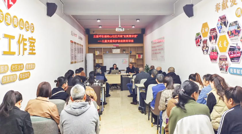 11月11日,达州市达川区三里坪街道南山社区邀请达川区向阳家庭教育中心老师开展“宜美微讲堂”第五期——儿童关爱保护家庭教育讲座,为辖区居民普及儿童关爱保护及未成年人法律法规知识宣传。