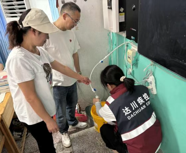 中高考临近,为确保达川区两考期间广大师生住宿、饮水和生活环境等卫生安全。2025年5月21日至5月27日,达川区卫生计生监督执法大队联合区疾病预防控制中心,严格按照《公共场所卫生管理条例》《中华人民共和国传染病防治法》《生活饮用水卫生监督管理办法》《学校卫生工作条例》等有关规定对全区2所学校3个考点的师生生活环境、饮用水卫生管理、传染病防控、医务室管理等相关工作实施了全面专项监督抽检。 执法人员通过现场检查和查阅资料等方式重点对学生宿舍是否通风换气、空调滤网是否清洗及公共区域卫生状况;宿舍管理人员是否持有效健康体检证明上岗;室内外环境是否清洁消毒和记录;采购消毒产品及瓶装水是否索取评价报告及检验报告;医务室急救药品储存及效期、医疗器械浸泡消毒更换记录、医护人员资质及传染病登记报告落实等情况实施了监督。同时,联合疾病预防控制中心工作人员对教室直饮水、食堂末梢水等关键点位采集水样9份,重点检测浑浊度、臭和味、肉眼可见物、色度、PH和消毒剂余量、菌落总数、总大肠菌群等指标。 (查看宿管人员健康证及信息公示情况) (采集教室直饮水和食堂末梢水)