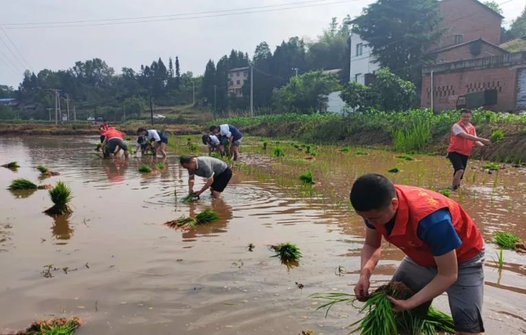 立夏刚至,农田处处染新绿,水稻插秧正当时。近日,达川区南岳镇充分发挥基层党组织战斗堡垒及党建带团建作用,组织动员40余名党员干部、团员青年组成联合志愿服务队,深入到田间地头,助力劳动力不足的农户开展水稻种植。鲜亮热情的“红色”与生机勃发的“绿色”交织,一幅幅农耕备耕图徐徐展开。 移栽秧苗是插秧前的必要步骤,南岳镇农业综合服务中心技术人员仔细为大家讲解了扯秧、捆秧、抛秧技巧,同步介绍了相关农业知识,助力志愿服务队员快速掌握种植方法。 (南岳镇春耕助农志愿服务队在农户承包的水田里移栽水稻) 南岳镇九元村位于达川区粮油现代农业园区核心区域,在农户承包的水田里,大家撸起袖子裤管,踏进泥泞,一字排开,低着头、弓着腰,跟随经验丰富的种田“老把式”开始插秧。抛秧分苗、搭线入土,大家在稻田里忙得热火朝天、不亦乐乎,经过三个多小时的奋战,一排排绿油油的秧苗很快在水田里铺展开来,在春日的阳光下焕发出勃勃生机。 (南岳镇春耕助农志愿服务队在农户承包的水田里进行水稻栽种) “作为团员,能参加这样的助力春耕生产活动很有意义,第一次近距离感受农业生产耕作不易,不仅增长了自己的见识,也更加明确了自己今后的努力方向和建设家乡的决心。”参加活动的学生这样说道。 (南岳镇团员青年帮助农户栽种水稻) “脚上沾有泥土,心中沉淀真情。这次活动,不仅让我们干农事、知农时、惜粮食,也让我们体会到了劳动者的艰辛。在今后的工作中,我要多为群众办实事、好事。”党员干部们纷纷表示,在今后的工作中要不断增强服务意识、提升服务水平,切实发挥党员先锋模范带头作用,立足群众实际需求,当好农忙时节“服务员”,把志愿服务送到种植户“心坎里”。 (南岳镇党员干部帮助农户栽种水稻) 下一步,达川区南岳镇将持续发挥好党建引领作用,深化党建带团建工作机制,聚焦乡村振兴各个领域,积极组织辖区党团青年志愿者开展各项服务活动,最大限度地调动党团青年的积极性和创造性,着力培育青年力量,助力乡村振兴。