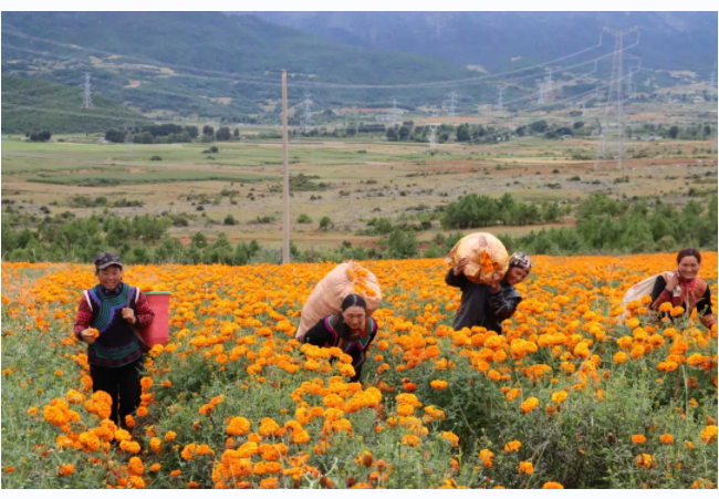 (棉桠镇木邦营村集体经济万寿菊喜获丰收)