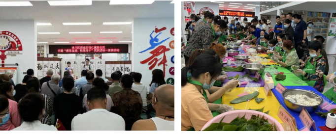 为营造浓厚的端午节日氛围,6月1日,东城街道凤翎社区工会组织辖区职工群众开展“粽香四溢满吉昌 心心相印邻里情”端午主题活动。此次活动中设置有包粽子、包包子、幸运大转盘等活动,工作人员一早就将各类食材、工具、游戏道具准备齐全。活动中,这边一群人熟练地捋粽叶、做漏斗状、填糯米、压紧实...一个个有模有样的粽子迅速成型;那边一群人和面、取馅、捏褶子,皮薄馅大的小笼包就呈现在大家的面前。等待粽子和小笼包新鲜出炉后,大家共同分享亲作制作的美食。在随后的互动环节中,每人转动一次幸运转盘,领取一份节日礼品。现场气氛欢乐和谐,还结合市域综合治理工作,向辖区职工群众宣传法律知识,宣传保险“守信用、担风险、重服务、合规范”的理念,提高消费者防诈骗和维权能力。