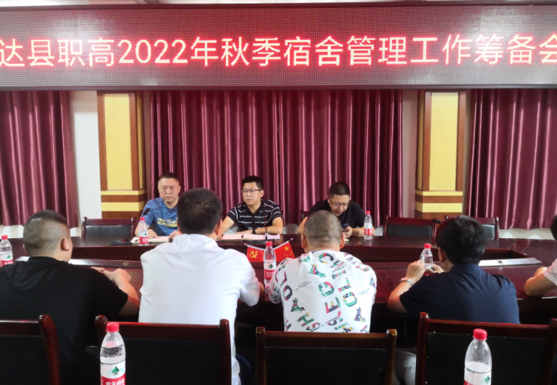 8月29日下午,四川省达县职业高级中学在学校行政会议室召开了2022年秋季宿舍管理工作筹备会,会议由学生科副科长柏升全主持,全体宿舍管理人员参加会议。