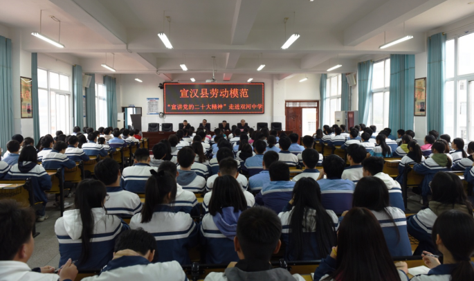 双河中学高三(1)班学生冉旭说,听了两位劳模的宣讲,我体会到身逢盛世之中华的光荣与幸福,身为新时代青年,我更要不负理想、不负韶华,做担当民族复兴大任的时代新人,为全面实现中华民族伟大复兴而团结奋斗。