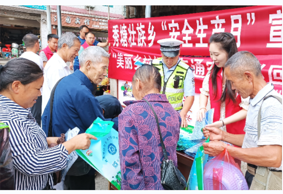 为了加强安全生产工作,防止和减少生产安全事故,保障人民群众生命和财产安全,促进经济社会持续健康发展。6月16日上午恰逢乡赶集日人流量活跃时刻,由秀塘乡安监站、司法所、综治办、消防站、派出所、乡工委组成的安全生产宣传工作组,到秀塘乡街道上开展第22个全国安全生产月宣传咨询活动。