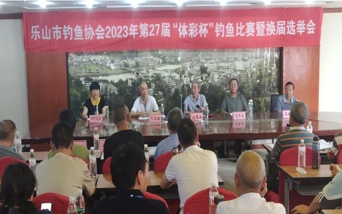 6月19日,乐山市钓鱼协会借在马边举行第二十七届"体彩杯"钓鱼比赛的契机,在马边金河假日酒店六楼会议室举行换届会议。会议由原乐山市人大常委会副主任、乐山市第七届钓鱼协会主席陈常山主持;原乐山市政协副主席雷有成,乐山市钓鱼协会副主席、秘书长熊文瑛,乐山市钓鱼协会副主席陈永康出席会议并在主席台就座;各县(市、区、自治县)钓鱼协会负责人和参加本次钓鱼比赛的全体代表队员参加会议。