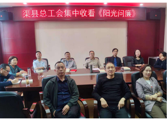 10月9日15:00,渠县总工会组织全体干部职工在机关第二会议室集中收看达州市 2023年第3期(总第29期)“阳光问廉”全媒体直播节目。