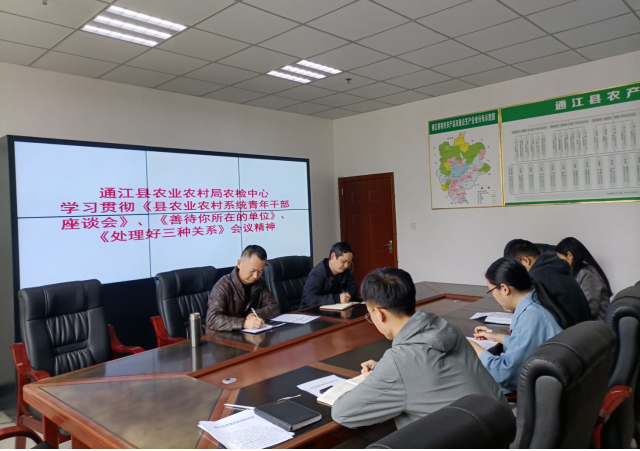 3月16日下午,通江县农业农村局农产品质量安全检验检测中心组织召开专题会议,学习贯彻《县农业农村局系统青年干部座谈会》、《善待你所在的单位》、《处理好三种关系》等会议精神。县农业农村局农安股股长杨庚午出席会议。