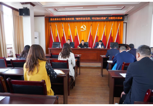 四川先锋网消息(邓若贝)4月13日上午,开江县自来水公司党支部在四楼会议室召开“缅怀革命先烈,牢记初心使命”主题党日活动,活动由党支部书记、董事长张自力主持,全体党员参加活动。