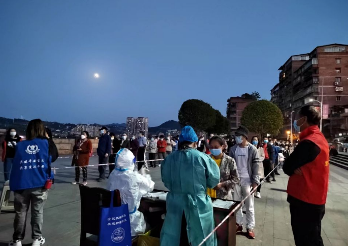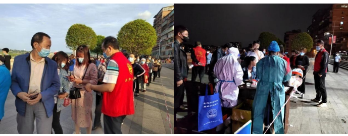 “请各位居民佩戴好口罩”“保持一米距离”——现场喇叭不间断地播放,工会志愿者有序地忙碌着,用实际行动践行工会干部职工的责任与担当,有力地保障了宣汉县蒲江街道龙岗社区穿孔子广场全员检测工作高效、有序、顺利完成。这是笔者5月15日晚,在蒲江街道龙岗社区穿孔子广场第二轮全员核酸筛查现场所采集到的一幕。