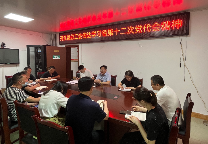 6月2日上午,开江县总工会召开专题会议,传达学习省第十二次党代会精神。县总工会党组书记、副主席提名人选蒋利平主持会议并讲话,全体干部职工参加。