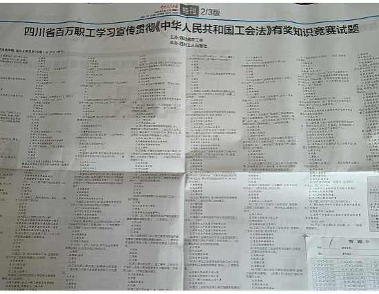 为让广大教职工准确领会《中华人民共和国工会法》修改的整体思路、主要内容,让大家在以赛促学、以学促用中收获“干货满满”的工会法知识。6月6日,渠县有庆镇第一小学工会积极组织教职工线下参与四川省百万职工学习宣传贯彻《中华人民共和国工会法》有奖知识竞赛试题答题活动。