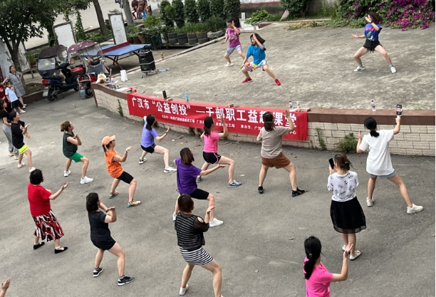 2022年6月21日晚,由中共广汉市直机关工委、广汉市总工会、金鱼镇社工站主办,广汉市诚恩社会服务中心承办的“公益创投”项目--干部职工“益趣课堂”第一期尊巴舞班在金鱼镇和兴社区法治教育广场开班。