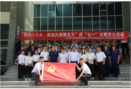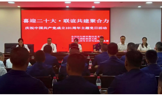 在中国共产党成立101周年之际,为教育引导干部职工了解党的光辉历史、感悟党的初心使命、领会党的创新理论、传承党的红色基因,激发广大党员干部爱党爱国热情,努力营造争先创优、和谐奋进的良好氛围,6月28日,金川县行政审批局党支部联合金川县消防救援大队、沙耳乡沙耳尼村党支部共同开展“喜迎二十大·联谊共建聚合力”庆“七一”主题党日活动,来自三家单位的98名党员及干部职工参加本次主题党日系列活动。