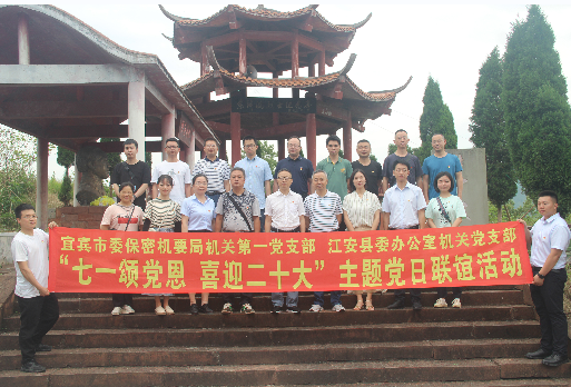 二是党支部开展庆“七一”联谊活动。6月28日上午,宜宾市江安县委办机关党支部联合宜宾市委保密机要局机关第一党支部到大井镇兴伏村碗厂坡中国工农红军川滇黔边区游击纵队革命旧址开展“七一颂党恩·喜迎二十大”主题党日联谊活动,学习革命先烈余泽鸿百折不饶、不怕牺牲的大无畏共产主义精神,警醒党员干部铭记革命历史,继承先烈遗志。6月29日,宜宾市江安县直机关工委办公室党支部和宜宾市江安县委党研室党支部前往中国李庄文化抗战博物馆联合举办“参观文化抗战博物馆·踔厉奋进新征程”主题党日活动。