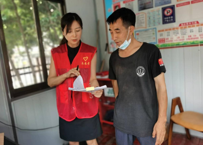 (图为:志愿者在南坝社区居民楼打扫楼院)