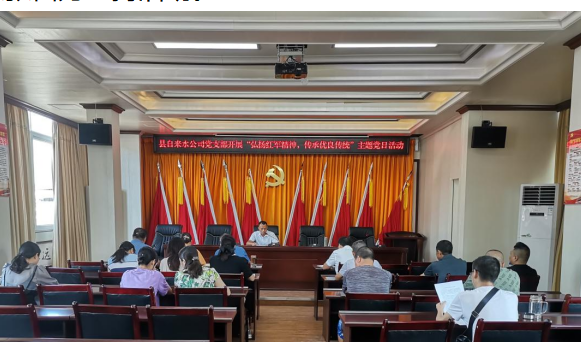 为进一步规范党员组织生活,强化党员日常教育管理,不断提高党员队伍质量,提升党支部凝聚力和战斗力,8月10日上午,开江县自来水公司党支部组织全体党员在四楼党员活动室召开“弘扬红军精神,传承优良传统”主题党日活动,党支部书记、董事长张自力主持活动。