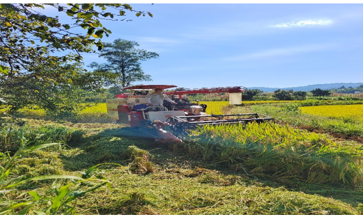 (图为青龙镇三堰村稻谷收割场景)