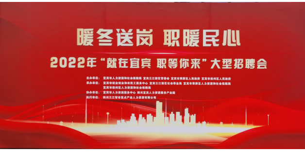 招聘会以“‘就’在宜宾,‘职’等你来”为主题,由宜宾市人力资源和社会保障局、宜宾三江新区管委会、翠屏区人民政府、叙州区人民政府联合主办,通过线上线下同步招聘方式进行。
