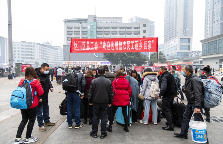 四川先锋网消息(张琳敏)春节将至,为家庭幸福付出不懈努力、为经济社会发展作出巨大贡献,在外忙碌了一年的农民工朋友们,你们,辛苦了!达州市达川区总工会让你感受到回家的第一份温暖。1月13日,达川区总工会在达州火车站开展“欢迎在外农民工回家”温暖回家路活动,拉开春节送温暖活动序幕。