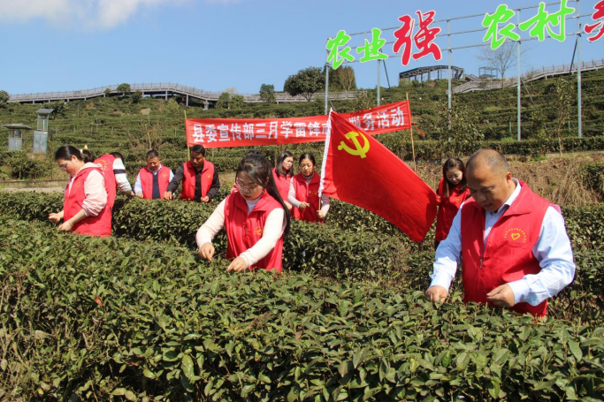 随后,县委宣传部党员、预备党员、积极分子和女职工顶着烈日来到茶园帮助采摘春茶,开展志愿服务活动。(夏平)