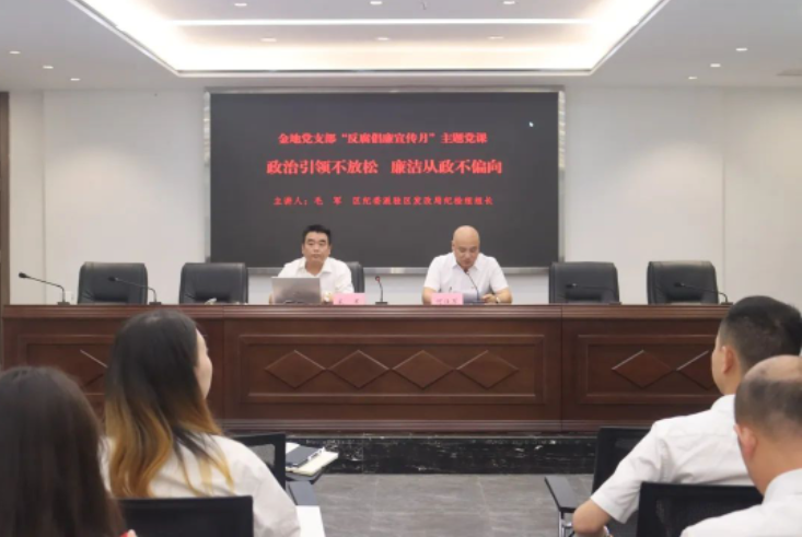 为深入贯彻落实全面从严治党要求,进一步增强党员干部廉洁自律意识和拒腐防变能力,推进党风廉政建设和反腐败工作深入开展,5月19日上午,达州市金地实业发展集团有限公司党支部开展“反腐倡廉”主题教育活动。