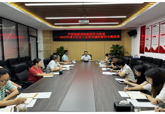 “七一”前夕,为进一步提升党员干部党性修养,筑牢拒腐防变思想防线,通川区总工会结合廉政宣传月系列活动,开展了“书记讲廉政党课”活动。党课以“严抓狠管持续推进作风建设”为题,深入剖析党员干部违纪案件及其教训警示,要求全体党员干部从案例中吸取教训,引以为戒,时刻保持清正廉洁。