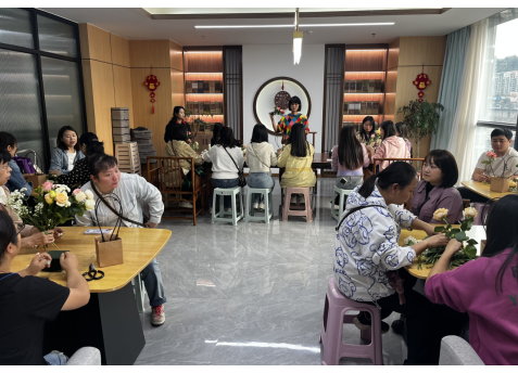 区职工活动中心精心安排了花艺老师为职工讲解插花的种类、基本技巧,指导大家如何选材和制作插花。在花艺老师的指导下,大家将手中普通的花草通过修剪、整枝,再根据不同的色彩、形状整合到一起,一篮篮精心装饰的插花作品就新鲜出炉。