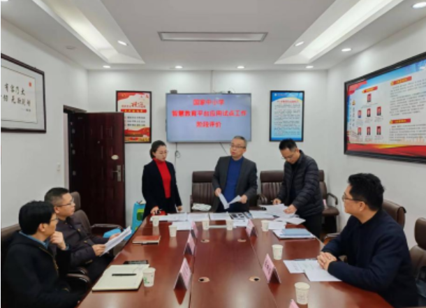在考评总结会上,评价组各位成员通过认真查阅学校运用智慧教育平台试点中形成的各种资料,现场登录、查看国家中小学智慧教育平台师生注册,家长群、教研群、班级群建立,资源应用相关运行数据,听取汇报等多种方式,进行现场调研和督导检查工作。