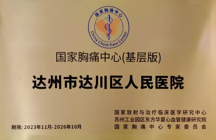 达川区人民医院通过中国胸痛中心授牌认证,成为国家级基层版胸痛中心