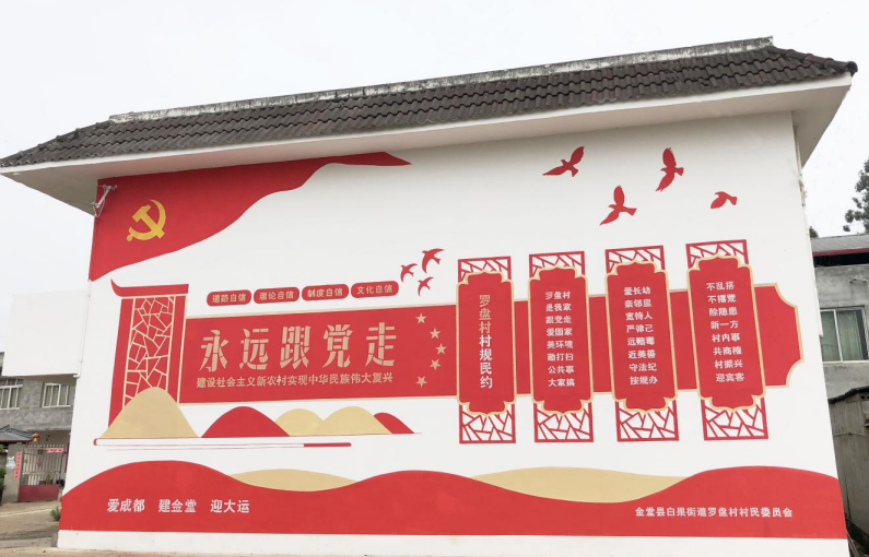 一面面主题鲜明的乡村文化墙,把村子点缀得恰到好处。每道散发着韵味的乡村文化墙,以其栩栩如生的主题,精心勾勒出村庄的民俗风情,将乡野的景致装点得恰到好处……在四川成都金堂县白果街道办事处罗盘村这片土地上,绘制出的一幅幅让人向往已久的田园梦,让人心底涌起阵阵温情与淡淡的乡愁。