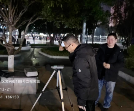 当晚,达川生态环境局执法人员和监测人员直奔信访件点位现场,迅速展开了分工协作。突击检查中,执法人员走访天益广场周边群众,了解群众诉求,化解矛盾,监测人员仔细进行现场踏勘调研。为确保监测数据的真、准、全,根据踏勘调研和走访收集的相关情况及信访投诉问题,现场会商研判、制定监测方案,最后在天益广场周边布点完成噪声监测。