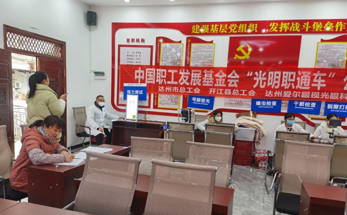 四川先锋网消息(周红)为贯彻落实习近平总书记关于工人阶级和工会工作的重要论述精神,切实体现工会服务职工的职能职责,1月23日至24日,达州市总工会在四川省水电集团开江明月电力公司开展了“光明职通车”公益项目活动,达州爱尔眼科医院组成的医生团队为公司职工开展免费检查眼部健康公益活动。