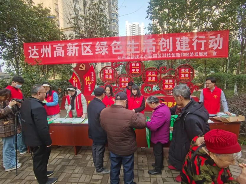 近日,达州高新区生态环境局、科经局组织志愿者在达州高新区长田新村安置小区开展了以“达州高新区绿色生活创建行动”为主题的创绿宣传活动。