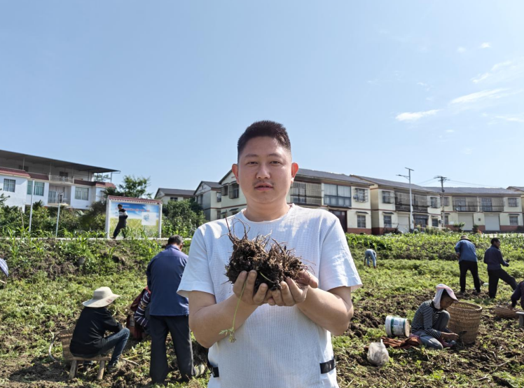 “去年镇党委政府先后多次前往德阳、乐山等地学习考察中药材种植先进经验,通过支部引领、专业合作社发动、大户带动、小户联动的方式进行种植,引进中药材‘川芎’,以6个村(社区)集体经济合作社为试验点,承包村民冬闲田,村与村之间开展药材种植发展‘比学赶超’。我们白腊园村试种了10亩,按目前收获的情况来看亩产能达到400斤左右,预计总收入4万多元,而且这几年川芎行情稳定,一亩田能赚一两千元,今年我们村决定扩大种植规模,切实把握好川芎这把金‘药’匙。”白腊园村支部书记冉启君说。