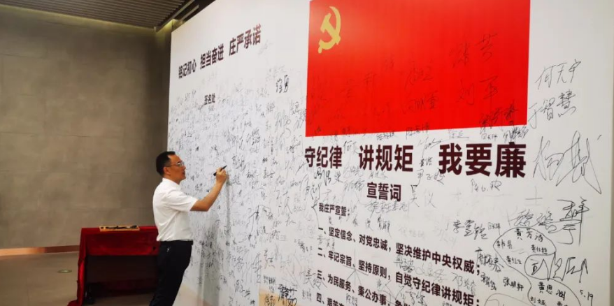 活动中,全体党员干部统一着装、仔细参观了2024年“510”(我要廉)红廉故事主题展,认真聆听了每张老照片背后的红廉故事。随后,全体党员庄严宣誓:“坚定信念、对党忠诚,坚决维护中央权威……”铮铮誓言、拳拳红心,铿锵有力的话语表达了大家对“守纪律、讲规矩、我要廉”的初心和决心。