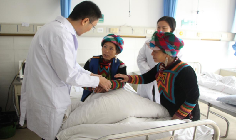 ——关心关爱,无微不至。为方便彝汉百姓更便捷就医,特别设立一站式服务中心,该中心集医保政策咨询、病情证明盖章、出生医学证明初次申领等服务,进一步优化流程,为患者提供一站式便捷服务。为进一步方便各族群众看病,将导诊台设立为“彝汉双语”导诊,设立相应的彝语标识标牌,并安排少数民族双语导诊人员主动引导少数民族患者挂号、检查、看病和取药。合理分配科室人员,基本做到各科室都配有少数民族医务人员,根据本科室特点,制定常用“彝汉双语”卡,做到人人会讲彝语,为增进与彝族患者的亲切感,改善就医体验,每天早上查房采用彝汉双语查房,遇到有不太懂汉语的少数民族患者时,采用彝语交流,促进民族之间友谊。为保护隐私,为前来就诊并带有嗷嗷待哺婴儿的育龄彝族妇女,提供温馨舒适的母乳喂养环境,内设有婴儿床、空调、微波炉、洗手池等设备。医院志愿者长期开展辅助挂号、送医到家、义诊等健康服务活动。医院党委书记李蕾经常进村入户看望慰问少数民族群众,了解他们的生活状况及健康状态,给予关心关爱。建立健全协调、处置涉及民族矛盾的纠纷和突发事件应急预案,定期排查涉及民族因素的矛盾纠纷;发生医患纠纷时,院方积极组织协调处理,严格依法办事,有效保障各民族群众的合法权益。医院通过“传帮带”方式,每年下派优秀医务人员到基层偏远乡(镇)卫生院帮扶,不仅让优质医疗服务下沉到基层卫生院,同时为基层卫生院培养当地少数民族医务人员,有效改善了基层卫生院的医疗服务水平。定期组织医护人员到村(社区)开展义诊义检咨询活动,每年组织医疗下乡活动不少于2次,让各族群众在家门口就能学到健康知识和接受检查,为群众办好事、办实事。