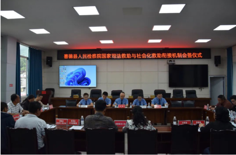 为深入贯彻“检护民生”专项行动工作要求,更深更实的落实一次救助长期关怀的司法救助理念,喜德县检察院在四川省检察系统帮扶凉山工作队的协助下,着力创新利民惠民举措,与县总工会、县妇联、县共青团、 县残联、县教体局、县民政局、县司法局、县人社局、县农业农村局、县卫健局、县退役军人事务局、县信访局、县关工委、县医保局、县红十字会、县新的社会阶层人士联谊会等16个部门共建“司法救助+社会救助”多元化救助衔接机制,并于6月20日召开座谈会,联合签署《关于建立喜德县国家司法救助与社会化救助衔接机制的实施意见(试行)》(以下简称《意见》)。