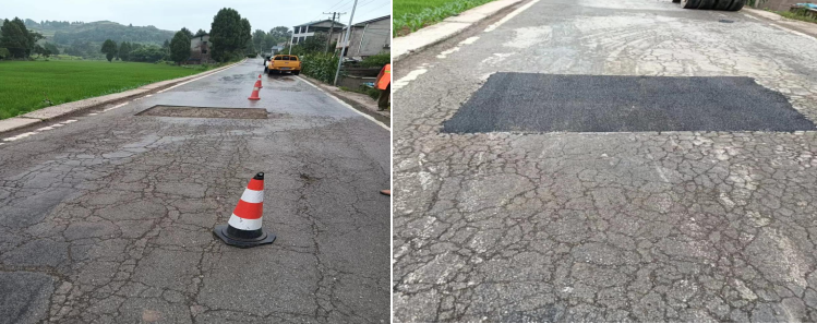 在6月份的一次巡查中,公路中心发现部分路段路面有不同程度的破损,影响车辆通行,存在有一定的安全隐患。中心迅速组织人员和设备进行修复,仅用两天时间就完成了修复工作,确保了道路畅通。