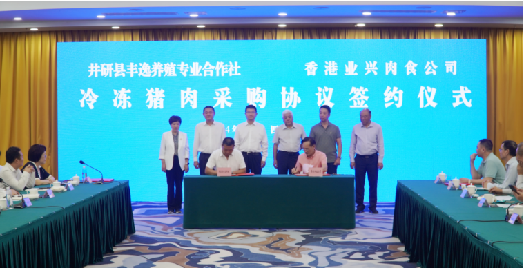 在恳谈会上,乐山市侨商联合会、乐山市进出口商会与珠海市农产品供应链协会、珠海市溢康农产品有限公司签订了“农产品采购协议”;井研丰逸养殖合作社与香港业兴肉食公司签订了“冷冻猪肉采购协议”。此次恳谈会的召开和合作协议的签订,标志着与香港食品行业的合作迈上了新的台阶。乐山市市长陈光浩亲切接见了考察团一行。(作者:邓建龙)