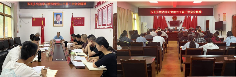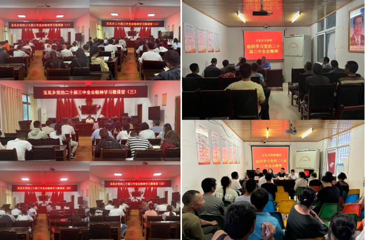 提高“学”的质量,在全面系统上下功夫。制定印发《中共玉瓦乡委员会关于宣传贯彻党的二十届三中全会工作方案的通知》《中共玉瓦乡委员会党的二十届三中全会学习活动工作方案》,乡党委理论学习中心组采用集中学习与宣讲解读相互融合的模式,组织召开党委(扩大)会、理论学习中心组会学习会议等4次;对乡村两级干部开展全覆盖宣讲解读2次;举行“党的二十届三中全会精神学习微课堂”5期;各村党支部结合实际,对照学习内容,依托支部“三会一课”、主题党日活动等,采取集体学、交流学等方式开展全会精神交流研讨6次,在全乡范围内掀起全面学习宣传贯彻党的二十届三中全会精神热潮。