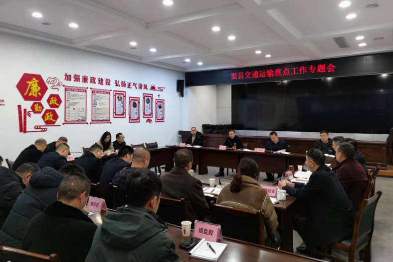 12月6日上午,渠县召开交通运输重点工作专题会,传达学习全市交通运输安全工作会议精神,全面总结2024年交通运输工作,深入分析当前形势,研究部署下步重点工作。渠县县委常委、县委政法委书记陈阳,渠县人民政府党组成员、副县长胡传胜参会并讲话。渠县交通运输局班子成员、局机关各股室负责人,下属各中心、县交投公司、成都建工以及重要客运、货运、水运企业主要负责人参会。