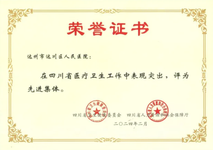 达州市达川区人民医院荣获“四川省医疗卫生工作先进集体”称号