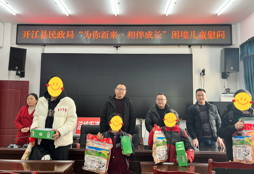 随着腊月寒冬的到来,新春的气息逐渐浓郁。为进一步加强我县困境儿童关爱服务,确保孩子们温暖过冬、快乐过节,近日,开江县民政局在全县集中开展“关爱困境儿童·寒冬送温暖”慰问活动,为全县96名困境儿童送去暖手袋、毛巾、牙刷、牙膏等生活用品和装有文具、书籍、书包等总价值约3.7万元的新年大礼包,传递了党和政府对困境儿童群体的特别关怀。