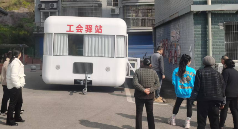 此前,区总工会深入访谈社区工作者、户外劳动者等群体,广泛征集职工群众意见,科学选点布局,选择劳动者密集且需求量大的斌郎街道堰坝社区投放移动工会驿站。移动工会驿站内配备了冰箱、空调、电视机、饮水机、医药箱、充电设备等标准化设施,同时针对社区职工群众需求定制特色服务,为快递员、环卫工等群体提供休憩场所,提供政策咨询、法律援助等服务。